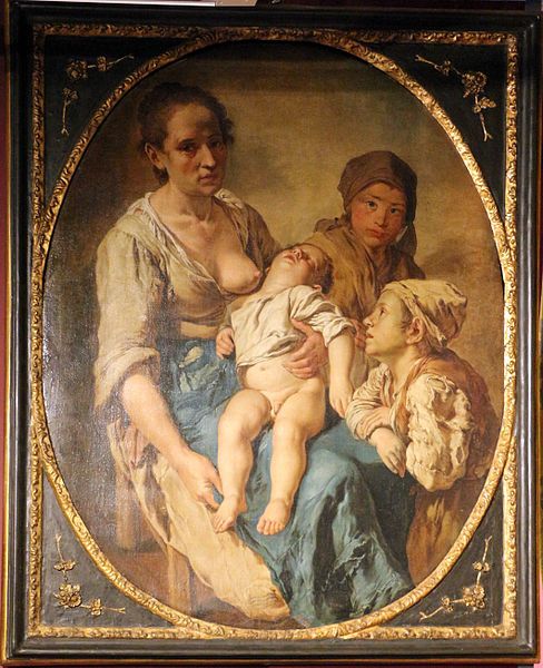 Et voilà un "spécialiste" du sujet. L'italien Giacomo Ceruti (1698-1767) semble tellement connu pour avoir peint des mendiants qu'on lui a donné le surnom évocateur : Il Pitocchetto, le petit mendiant ! Ci-dessus : Une petite mendiante et une femme en train de filer la laine, vers 1720,(coll.privée).
